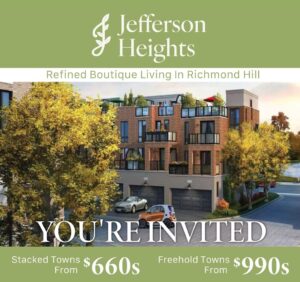 Discover Jefferson Heights Nestled at the corner of Yonge Street and Jefferson Side Road lies Jefferson Heights, a boutique community of freehold and urban townhomes that redefines elevated living in Richmond Hill. Set against the stunning backdrop of the Oak Ridges Moraine, this highly sought-after location offers scenic views and a tranquil environment. Urban Living …